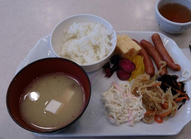 Maar meestal moet ik toch met wat minder genoegen nemen. Bij Toyoko Inn is dit een vrij typerend ontbijt: