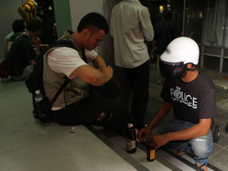 There weren’t that many people left but hardcore red-shirt guards were staying put as they waited for a possible incursion by soldiers.