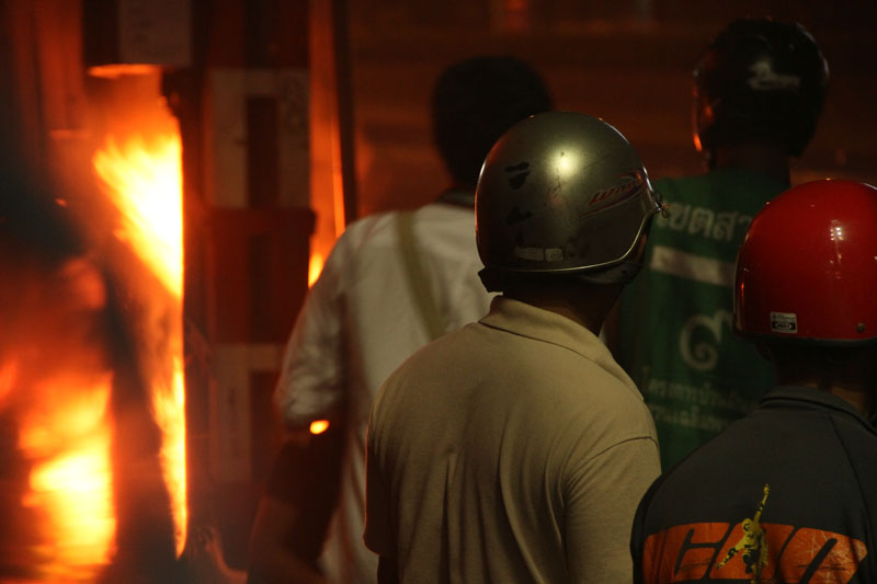 I walked with him to the Rajprasong intersection, the centre of the protest, where tens of thousands of people are still holding out bracing for the imminent military crackdown. Soon panic briefly broke as two ambulances sped to a corner of the front of the main stage.