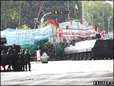 "This is very costly and really disrupts the city, and there's a limit to how long the government can allow it," he said. "The problem with negotiating is that you don't know who you're negotiating with. There's no Red Shirt leadership structure."Analysts said the army's apparent go-slow approach could reduce casualties, but the army also risks losing the initiative if anti-government protesters regroup outside the protest zone, giving rise to a multifront conflict.