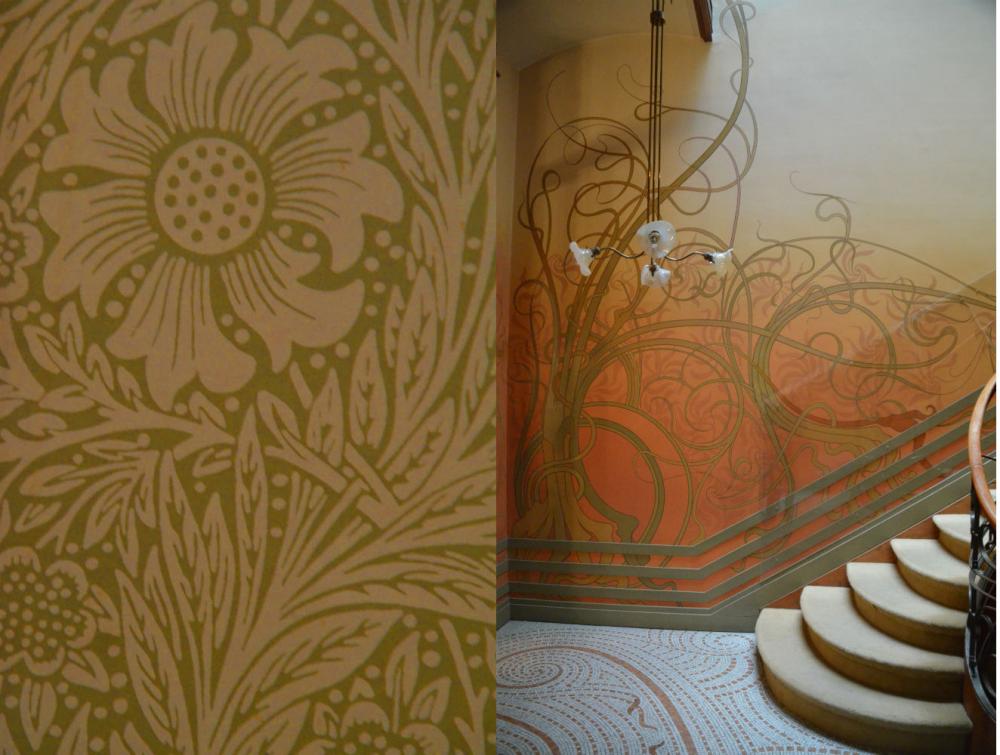 Mijn Nederlandstalige gids laat mijn oren spitsen: hij vertelt uitbundig over de intriges tussen Victor Horta en Henry van de Velde, twee belangrijke namen binnen deze kunststromingen in Brussel. De twee enigszins dominante mannen blijken niet door één deur te kunnen hebben gaan. Waar Victor Horta één van de grondleggers van de stroming was die zich tegen de toenmalige niet te stoppen industrialisering keerde en architect pur sang was, was Henry van de Velde opgeleid als schilder en had geen kaas gegeten van architectuur, maar valt te benoemen als autodidact. Toch hebben ze in het Tasselhuis wel door één deur gemoeten, waar ik me begeef, want Victor Horta wilde graag een behang waar alleen Henry van de Velde aan kon komen. Deze samenwerking is vervloeit tot één en al organische vormen in het Tasselhuis: overal waar ik kijk, zie ik de natuur tot leven komen en word ik ondergedompeld in kronkellijnen en bloemen.