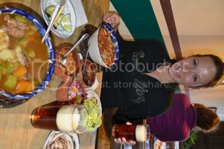 Sopa de mariscos oftewel de zeevruchtensoep. Daar kun je me ´s nachts wakker voor maken. Ik ben niet zo dol op ´mole´. Dit is een roodbruine saus met vele ingredienten zoals; chili, chocolade, knoflook, gemalen pinda´s , ui, kaneel en nog veel meer kruiden…Dit wordt over het vlees geserveerd, maar niet bij mij !