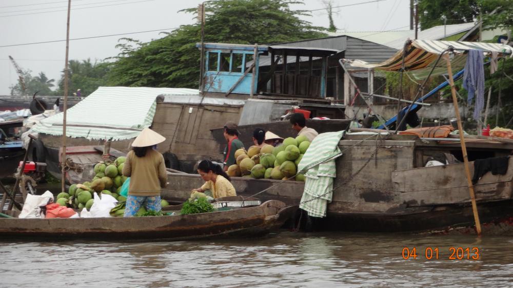 Hier wat foto’s van de drijvende markt van Phong Dien.
