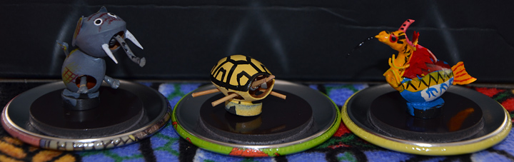 Drie magneetbeestjes, handgemaakt van de doppen van ginkgo-noten. Dat ding links moet trouwens een olifant voorstellen…