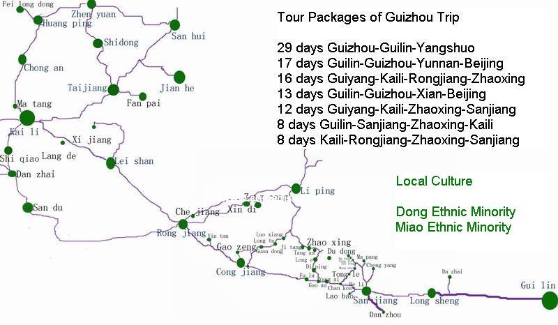 Let wel op dat het een avontuurlijk gebied van de provincies Guizhou en Guangxi is. Je treft daar niet veel buitenlanders die zelfstandig reizen. Enige hulp van hotels e.d. door plaatsnamen in het Chinees voor buschauffeurs en taxi’s op te schrijven kan handig zijn.