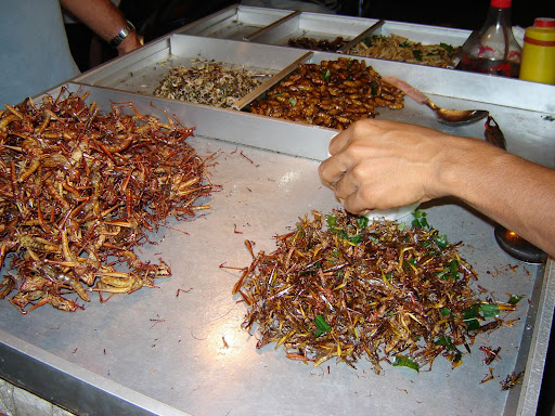 Ik zie daar die foto’s met gefrituurde insekten, wij hebben er ook bij gestaan in onze vakantie in Thailand.