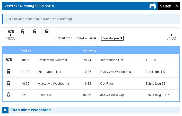 Ned - Moskou hebben wij niet per trein gedaan. Maar via Dusseldorf gevlogen voor 78 euro pp. Misschien ook een goede oplossing voor jullie?