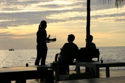 Koh Chang:Warapura resort, Lonely Beach. Niet goedkoop (ongeveer US$40 voor een bungalow per nacht), wel luxe. Beetje designerig ingericht, eigen balkon, mooie badkamer, tv en dvd-speler, gratis dvd’s te leen, zwembadje met bediening, restaurant aan de oceaan met super eten en drankjes en goede bediening, en elke avond spectaculaire zonsondergangen. Enige minpuntje is het lawaai van bars in de buurt 's nachts. Hoera voor oordoppen. Oh ja en het zandstrand is 5 minuutjes lopen maar ik lag liever in /aan het zwembadje.