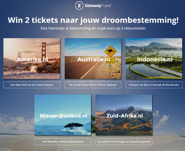 Win twee vliegtickets naar jouw favoriete bestemming. Kies zelf door hieronder op een bestemming te klikken!